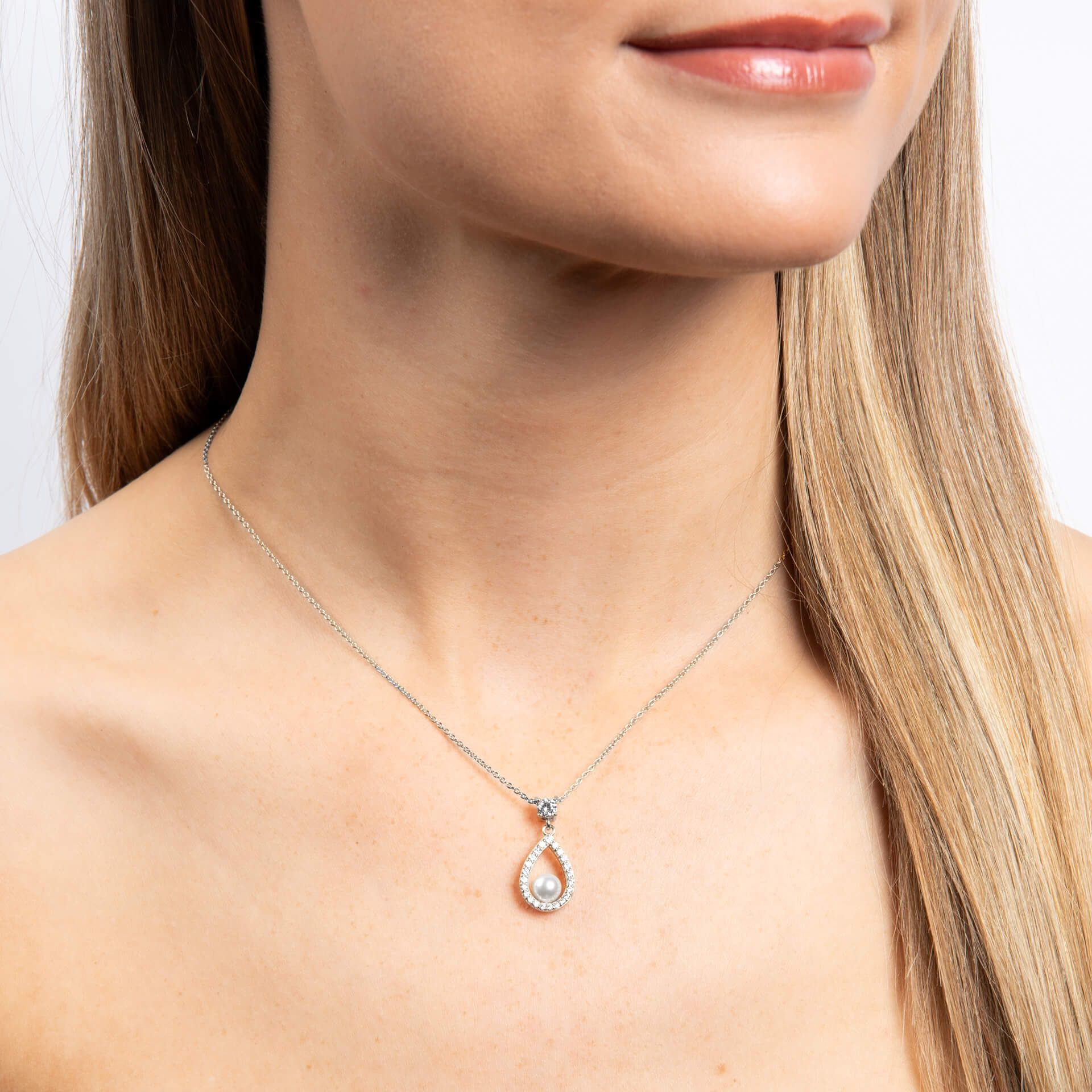 Diamonfire Open Halo Teardrop Pendant with Shell Pearl