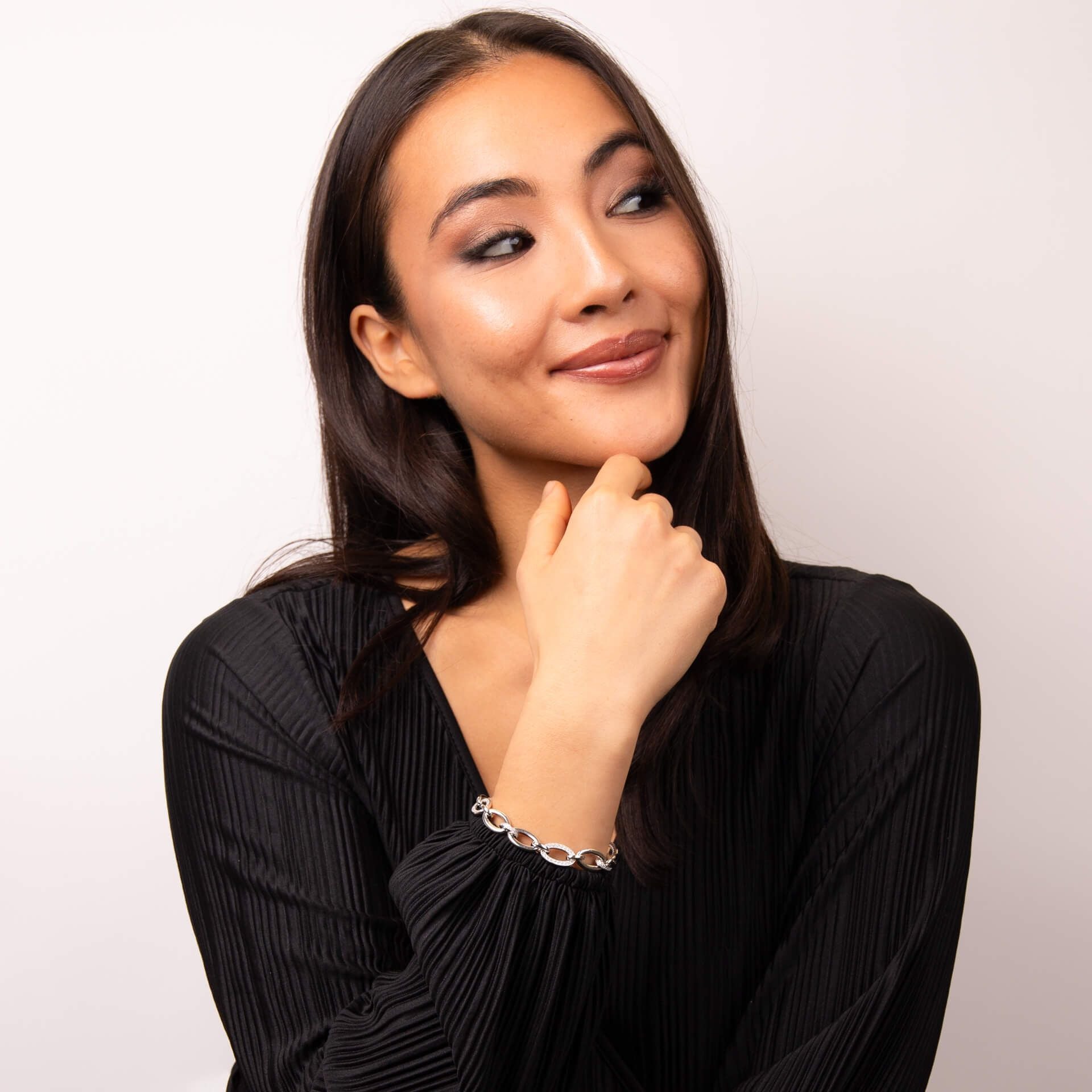 This spectacular chain bracelet highlights oval links decorated with stunning zirconia stones. Crafted in sterling silver with Diamonfire’s triple plating, this bracelet features an extendable length of 17cm-19cm and is the perfect piece for day to evening wear! Make sure to wear with other similar styles for a co-ordinated look.