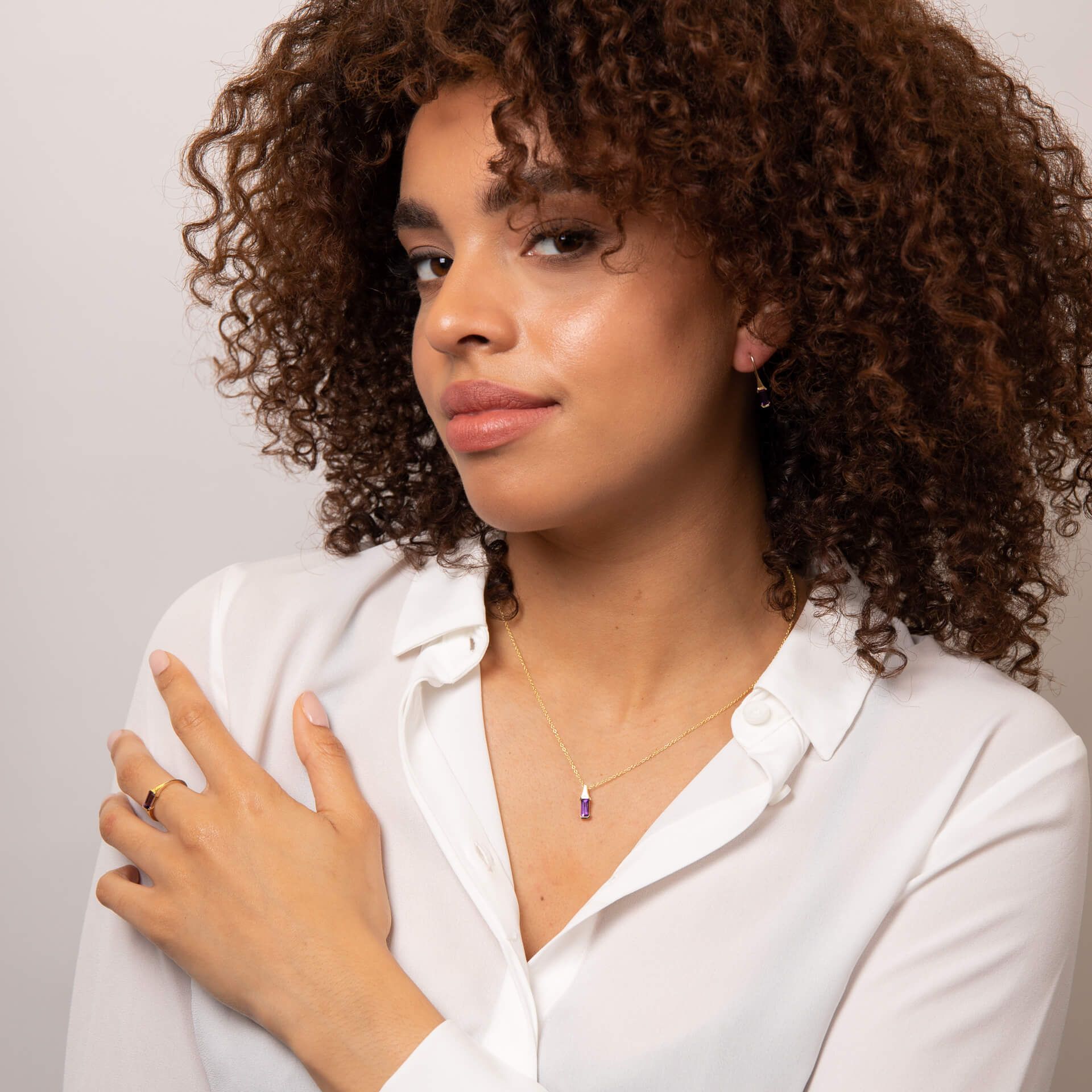 Indulge in the remarkable beauty of these elongated semi-precious stone hook earrings. The gemstones add a touch of glamour and elegance to the design, whilst the polished 9ct gold radiates luxury. More than a piece of jewellery, these earrings are an expression of unique style and personality. Whether you wear them as a statement empowerment piece or with the matching items, these earrings will effortlessly enhance any outfit and make you feel extraordinary.