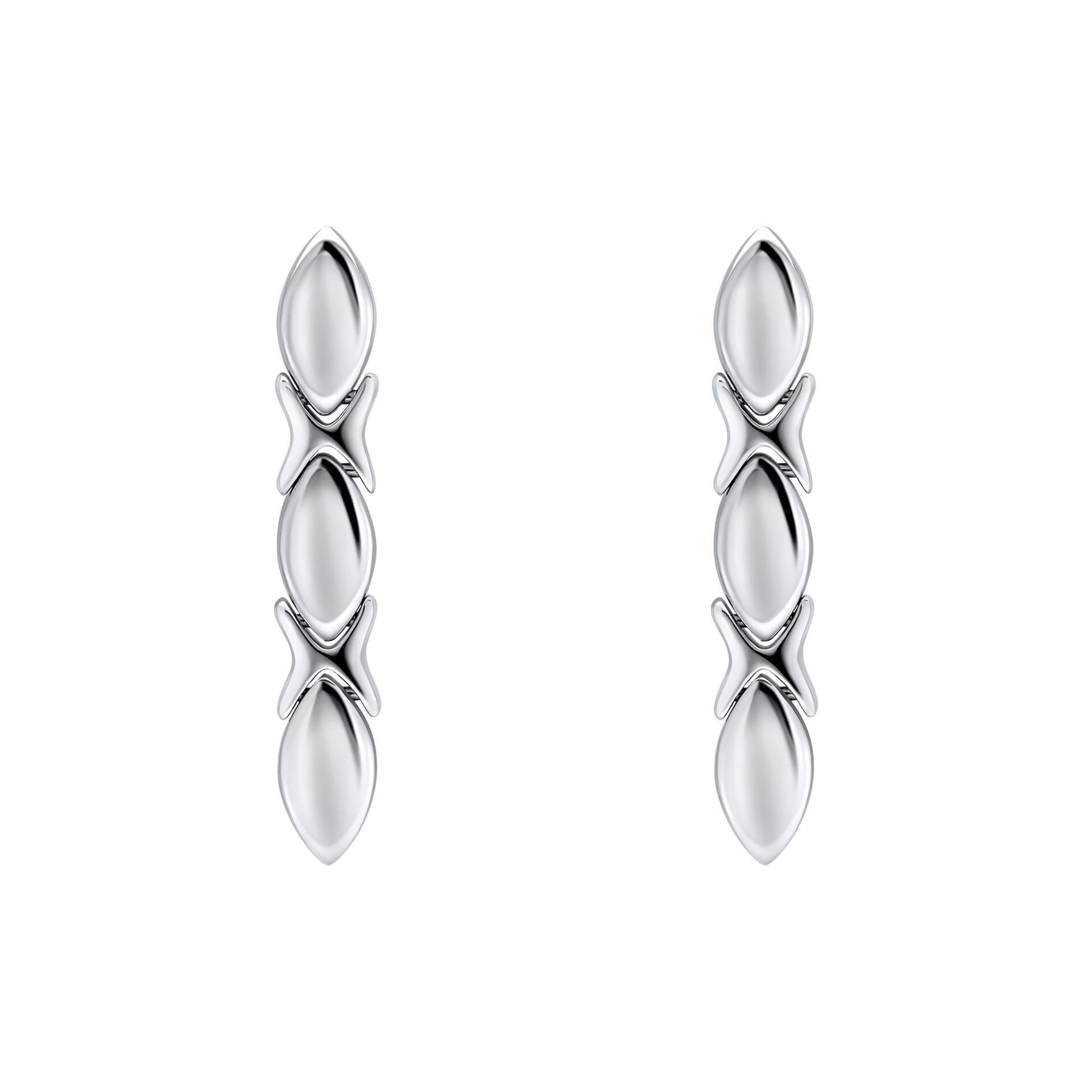 Discover the elegance and contemporary sophistication of these chain earrings, crafted in recycled sterling silver with an exquisite platinum plating. Featuring a sleek, elongated silhouette, these earrings showcase fluid forms and a seamless, articulated design, echoing the effortless grace of those who dare to stand out. The platinum plating adds a lustrous finish, elevating the understated beauty of the recycled sterling silver. Pair these earrings with the matching necklace and bracelet for a complete look that exudes elegance, whether for a glamorous occasion or as an everyday statement piece.