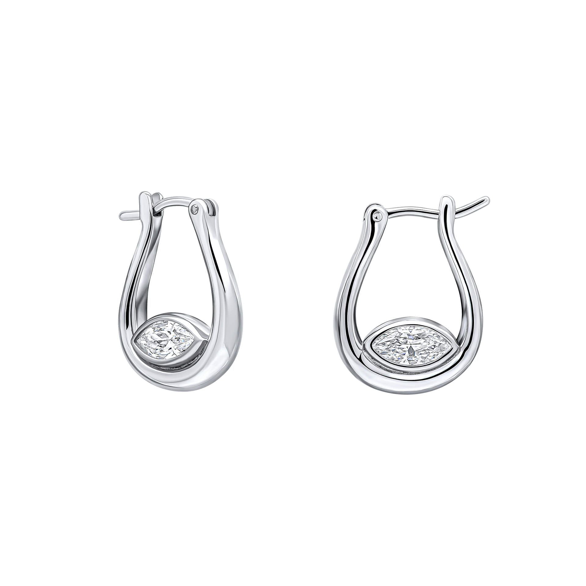 Embrace the essence of modern elegance with these stunning hoop earrings. Crafted from recycled sterling silver and finished with a luxurious platinum plating, these earrings feature a unique, fluid hoop shape that nestles a brilliant marquise-cut cubic zirconia, embodying the perfect balance of strength and delicacy. The stone’s sparkle is a subtle yet captivating focal point, making these earrings an ideal choice for both everyday wear and special occasions. Whether paired with the matching pendant or worn alone, these hoop earrings will ensure you exude elegance, flair, and confidence in every setting.