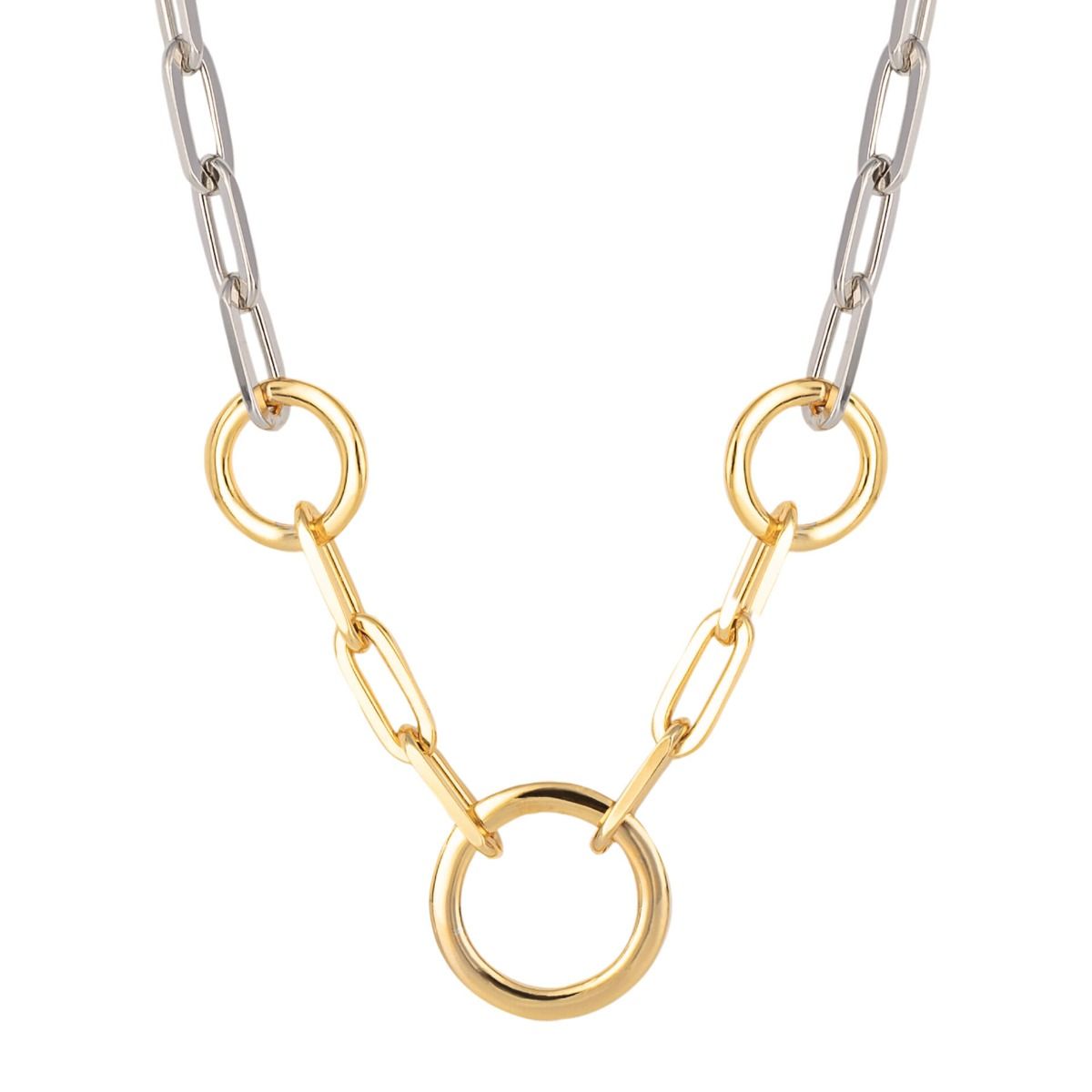 Statement chain link designs, such as this necklace, are always on trend for day or night looks and are perfect for stacking by mixing with smaller chain styles! Crafted in recycled sterling silver and featuring two tone plating of platinum and yellow gold, this necklace has an extendable length of 41cm-46cm and will complete any outfit, especially when worn with the matching earrings and bracelet!