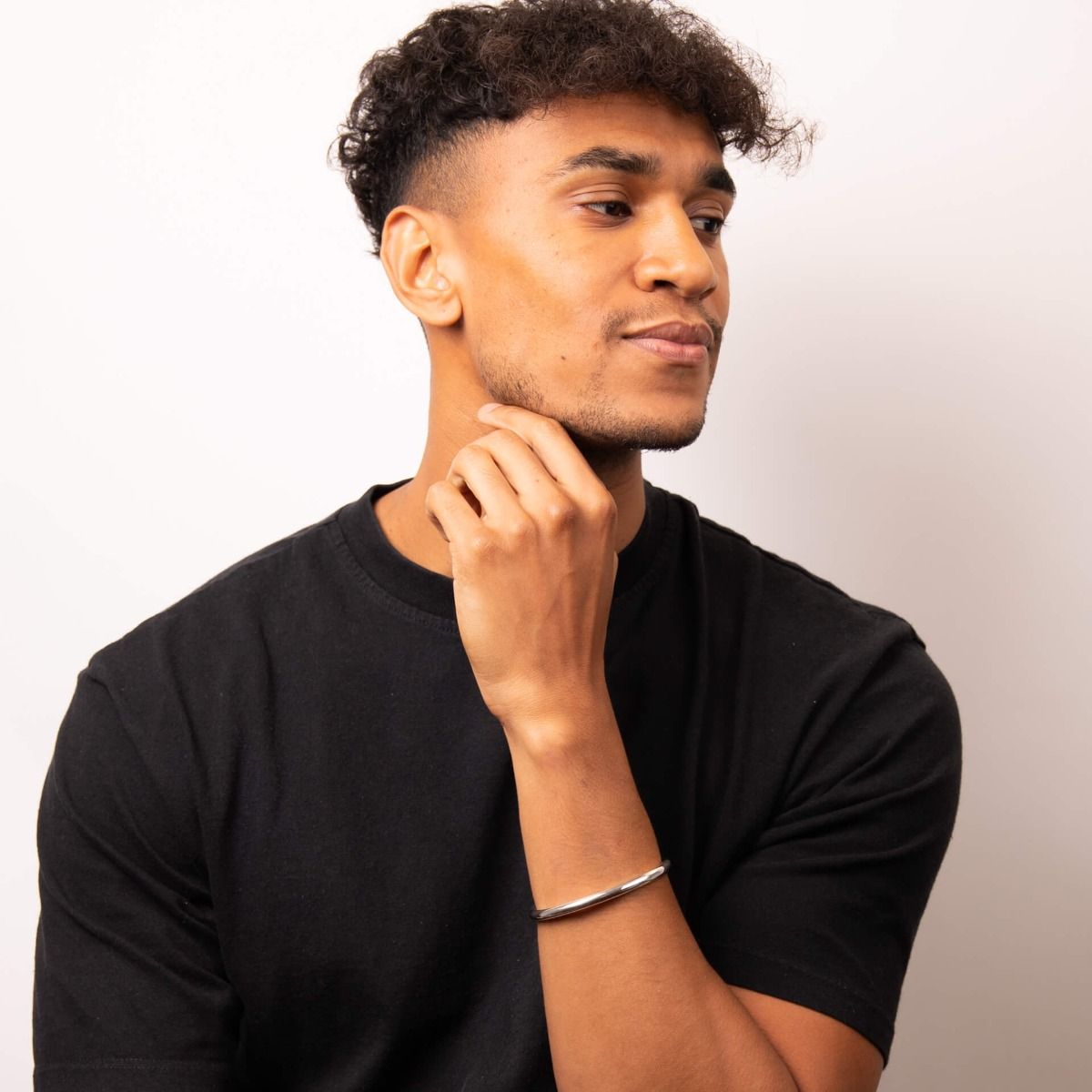 A neat minimalistic piece of wristwear made from smooth sterling silver, this bangle features oxidised detailing and a polished finish for extra style.