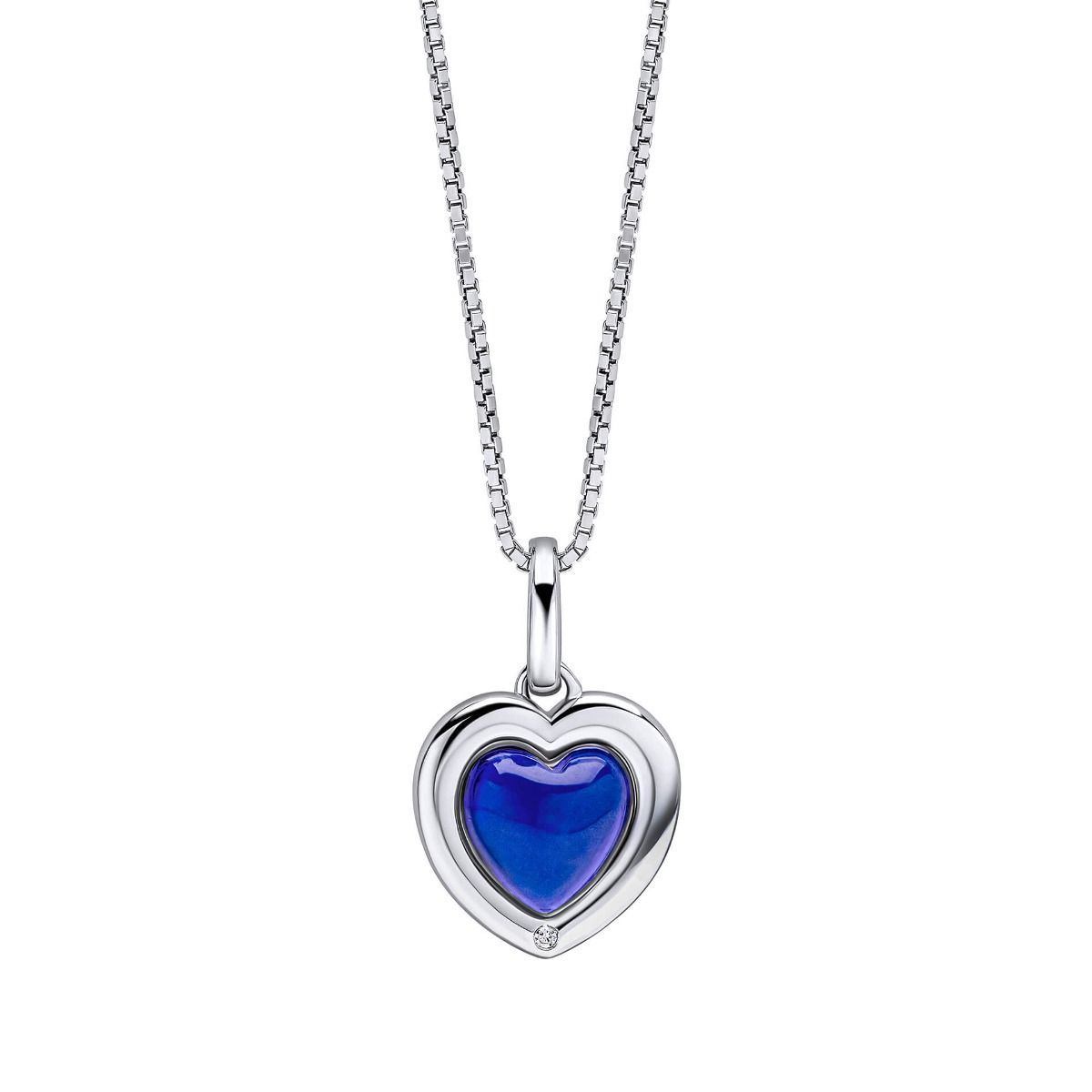 Inspiring a world of imagination, this magical mood stone pendant is a delightful piece designed to encourage any little one. Crafted from recycled sterling silver and plated with shimmering platinum, this enchanting pendant features a unique colour-changing mood stone at its centre, reflecting the wearer’s emotions. Watch as the heart-shaped stone transitions through a spectrum of colours, each revealing a special mood: Green for feeling confident, Yellow for when they're worried, Black for when they’re feeling tired, Blue for moments of calm, Purple for feeling energetic and Pink for when they’re truly happy. Don’t forget to pair it with the matching heart shaped mood ring for a complete look!