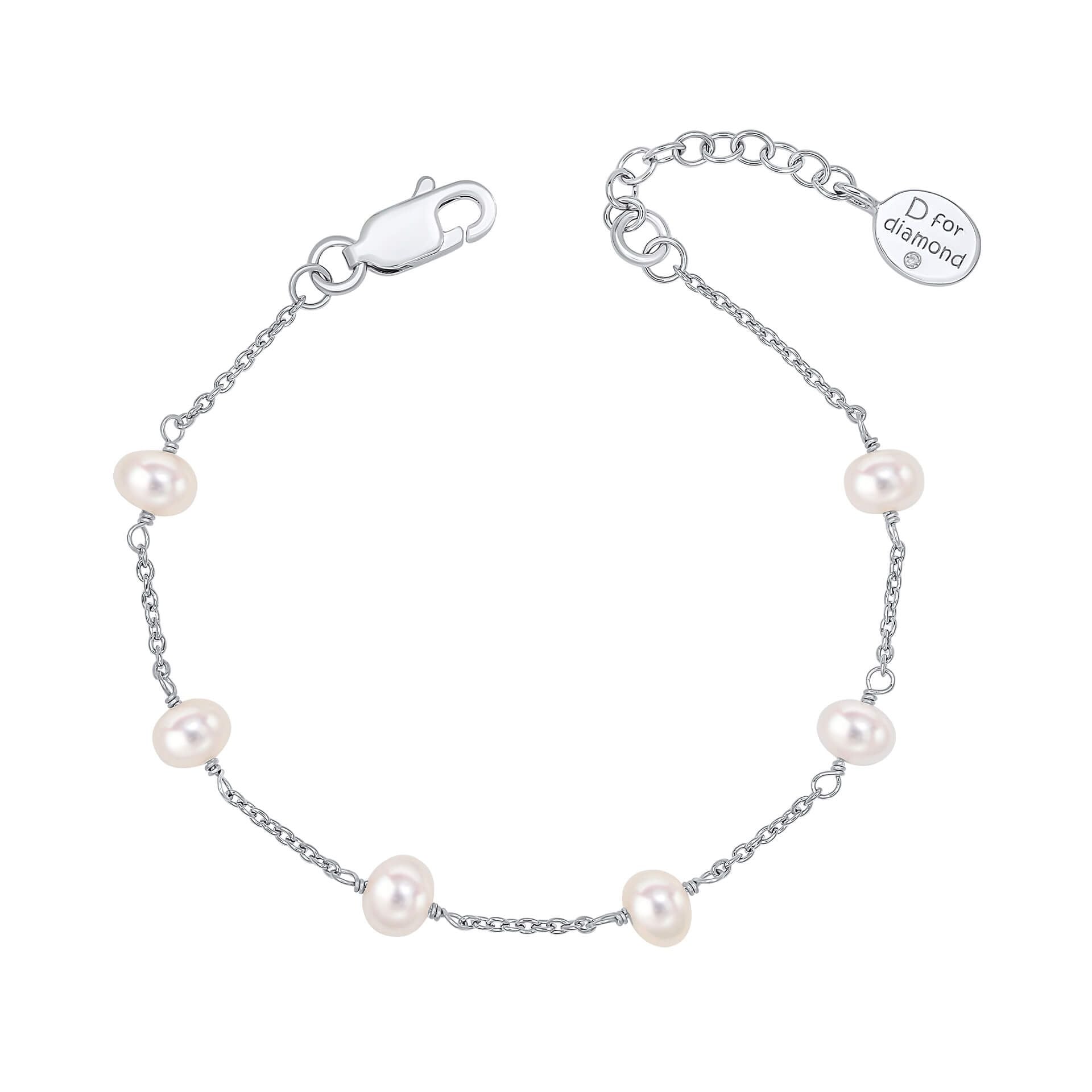 A delightful piece that captures the essence of whimsy and elegance, this station bracelet is crafted from recycled sterling silver with a platinum plating. At the heart of this bracelet are the lustrous freshwater pearls that are dotted around the chain. As your little one wears this bracelet, they will be adorned with the magic of the ocean, carrying a piece of its wonder wherever they go. A whimsical touch awaits discovery in the form of a small diamond nestled delicately on the branded tag by the clasp of the bracelet. The diamond serves as a reminder that even the tiniest elements can hold immense beauty. Ideal for Christenings or as a cute gift for your flower girl, make sure to pair with the matching necklace for an adorable co-ordinated set.
